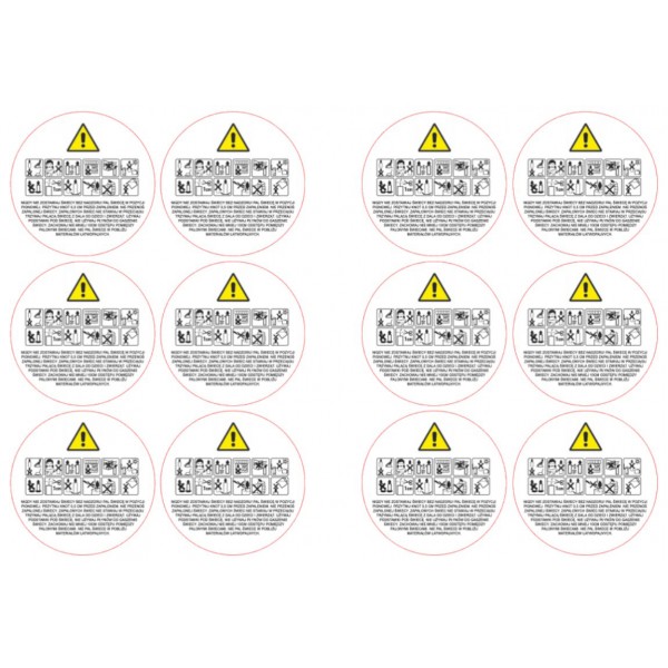 Zestaw zawiera 12 szt naklejek ostregawczych,